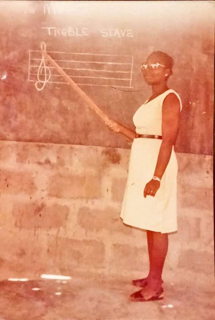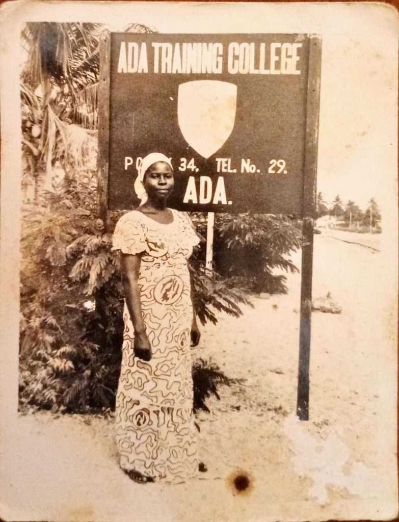 Her formal teaching life began as a volunteer teaching assistant at the Methodist School in Kojo Ashong. Her steadiness and care attracted attention; when Reverend Ntreh of the Methodist Education Unit visited. He inquired after the young helper and arranged for her employment as a pupil teacher on salary. In 1983 she followed a friend’s lead and applied for training, at Abetifi training collage. Asthma and the mountain chill at Abetifi induced her transfer to the Ada Teacher Training College, where she would grow into leadership.