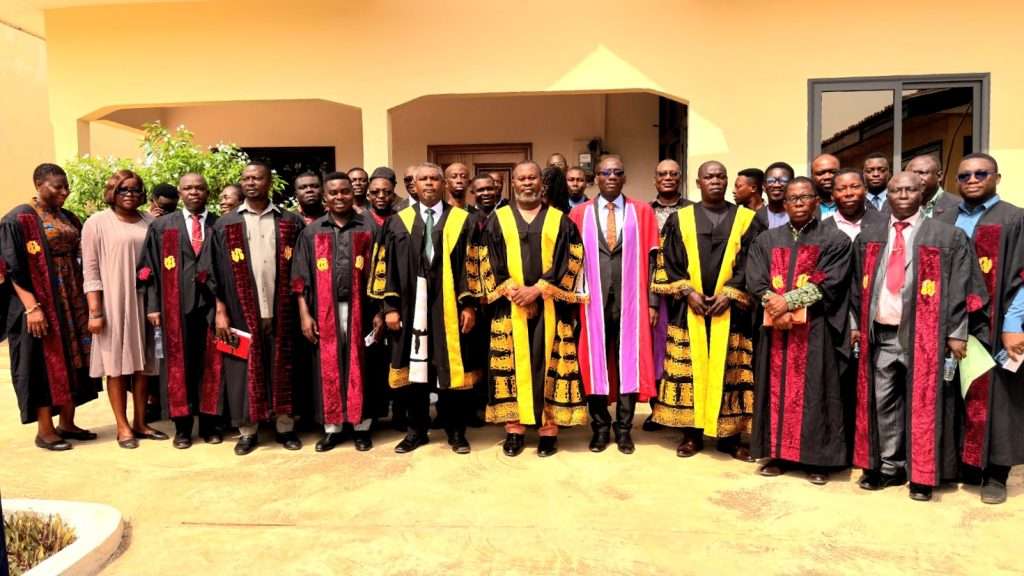 The matriculation oath was administered by Francis Prince Ankrah, Esq., Registrar of the College, to the freshmen presented by Dr. Nana Osei Yaw, Vice Principal. Opening and closing prayers were led by Evangelist Joshua Dugah, Assistant Lecturer in the Department of Science.
